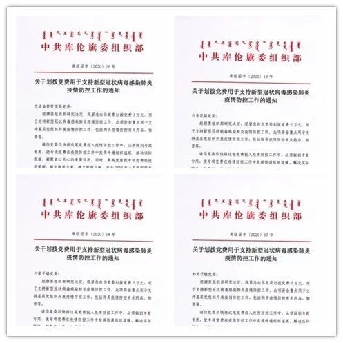 库伦旗委组织部下拨65万元疫情防控专项“党费”。近日,库伦旗委组织部向全旗各苏木镇、社区服务中心和旗直有关部门下拨65万元党费,支持基层党组织开展疫情防控工作,主要用于慰问战斗在疫情防控斗争一线的医务工作者和基层党员、干部;购买疫情防控有关药品、物资等;补助因患新型冠状病毒感染的肺炎而遇到生活困难的党员、群众。要求各基层党组织要尽快将这笔党费投入到疫情防控工作中,做到专款专用,使专项党费在疫情防控工作中发挥传递组织温暖、解决实际困难、凝聚党心民心的重要作用。
