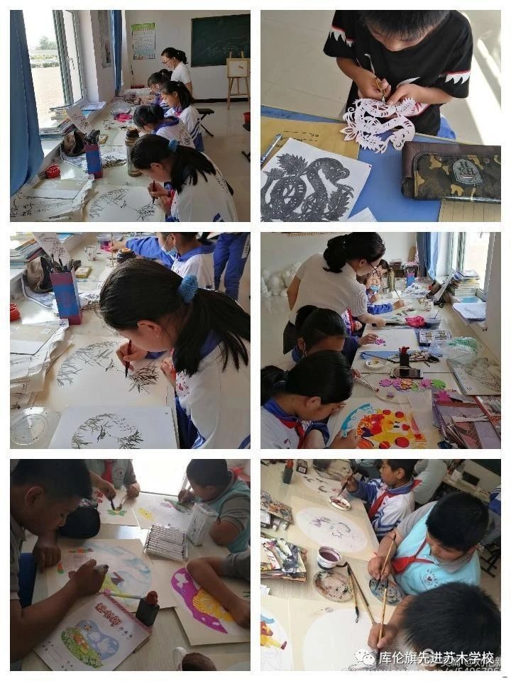 线条与颜色的融合 艺术与风采的展示———库伦旗先进苏木学校学生艺术作品展 |